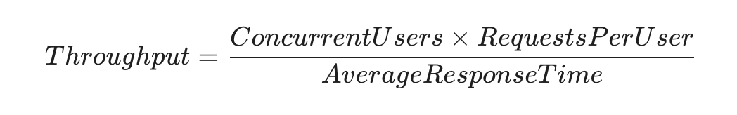 $$Throughput = \frac{Concurrent Users \times Requests Per User}{Average Response Time}$$